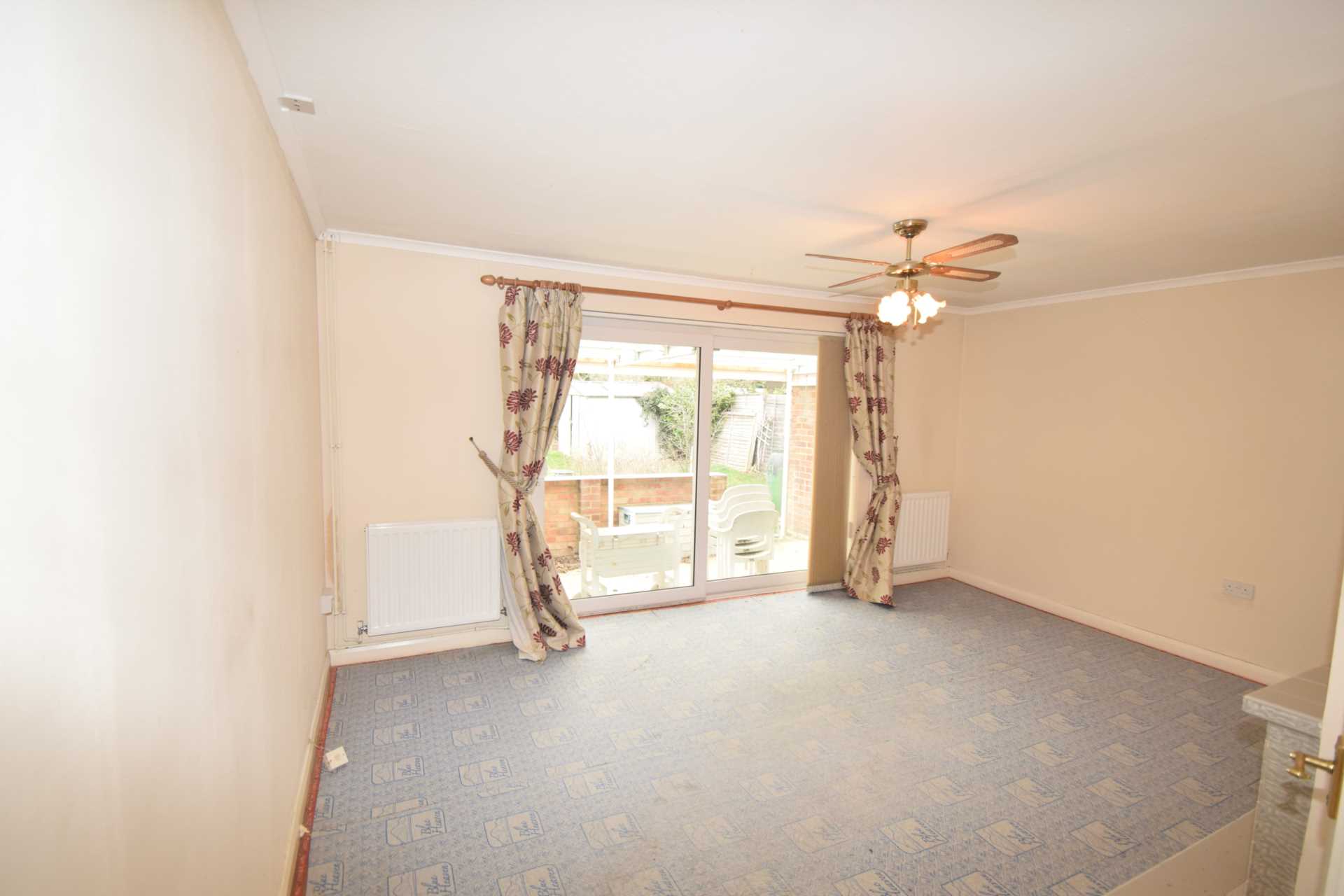 Good size lounge with sliding patio doors to rear garden leading to a covered veranda/porch and overlooking the pretty rear garden. Open fire with original tiled fireplace. Rotating ceiling fan/light fitting and radiators, Floor covering is underlay only as the carpet has been removed.